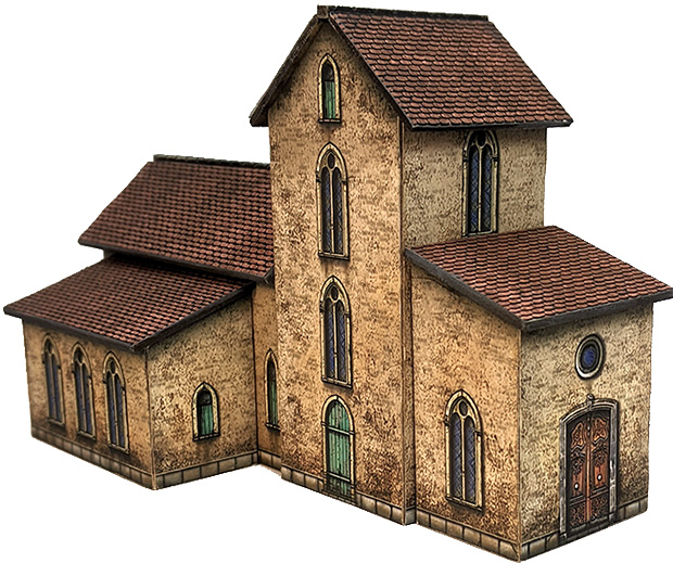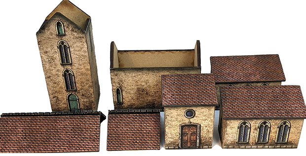 Two roofs are removable. The bottom side of each building is open, allowing for the placement of troops underneath the model.