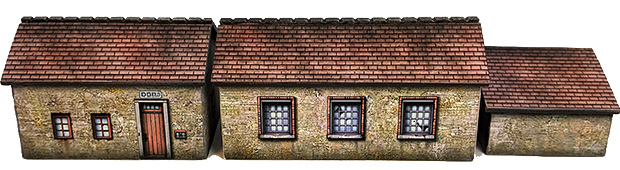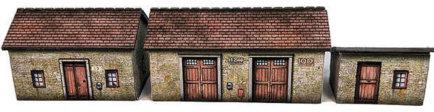 The bottom side of each building is open, allowing for the placement of troops underneath the model.