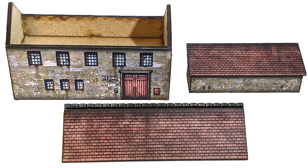 One roof is removable. The bottom side of each building is open, allowing for the placement of troops underneath the model.