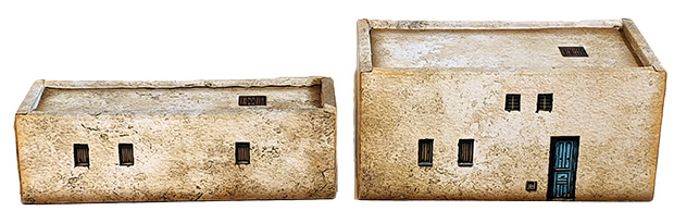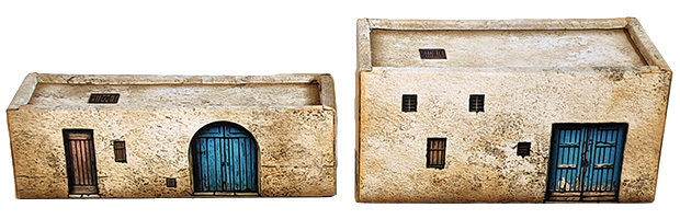 The bottom side of each building is open, allowing for the placement of troops underneath the model.